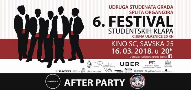 Udruga studenata grada Splita vas poziva na 6. Festival studentskih klapa koji će se održati 16. ožujka u Studentskom centru u Savskoj.